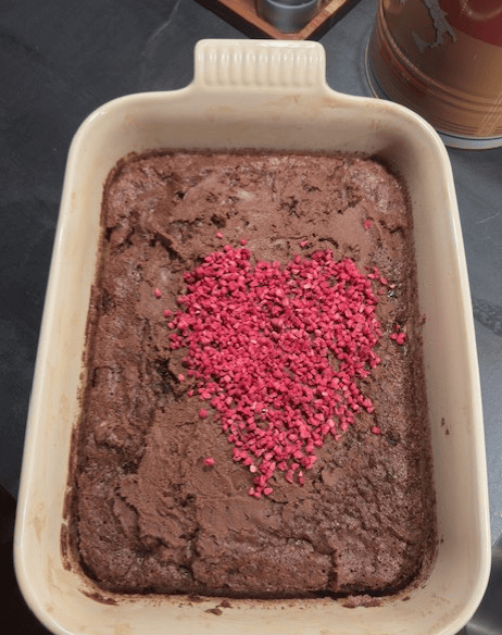 Lav et hjerte eller et dekorativt mønster med frysetørrede hindbær – det giver både en lækker crunch og et friskt, syrligt pift!
