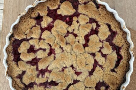 En smagfuld og saftig glutenfri tærte med rabarber og hindbær, toppet med en sprød crumble – perfekt til sommerens kaffebord. Den kan også laves laktosefri;) Bund og crumble (samme dej til begge dele): 400 g glutenfri havremel 400 g smør (blødt) 400 g sukker Fyld: 1 bundt rabarber (ca. 300–400 g), skåret i små stykker …