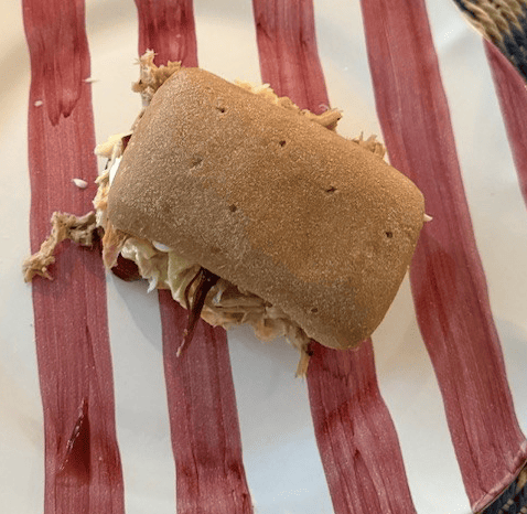 Brug to gafler og “pull” kødet fra hinanden. Det skal være helt mørt og trevlet.