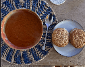 Denne ovnbagte tomatsuppe er nem at lave og fuld af smag fra bagte grøntsager og krydderier. Serveret med en glutenfri grilled cheese er det en enkel og mættende ret, der passer godt til både hverdag og weekend og til de kolde dage.